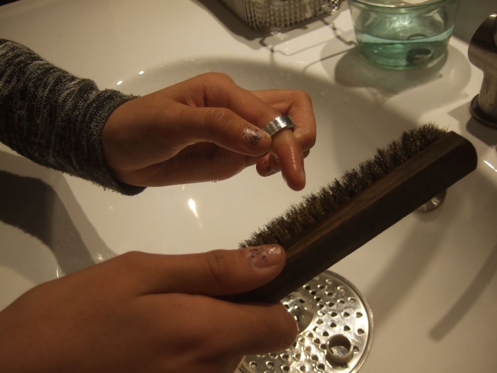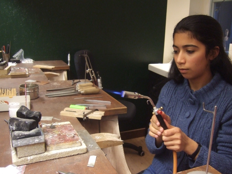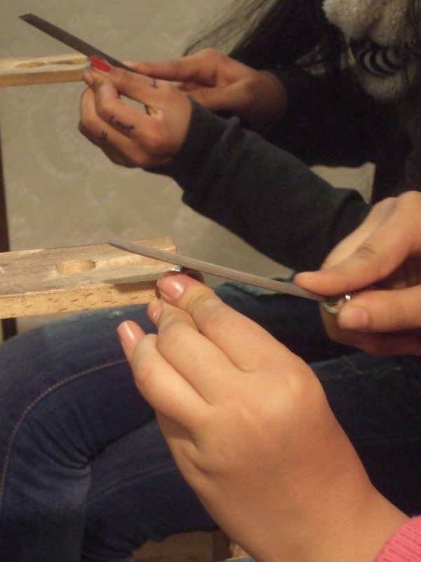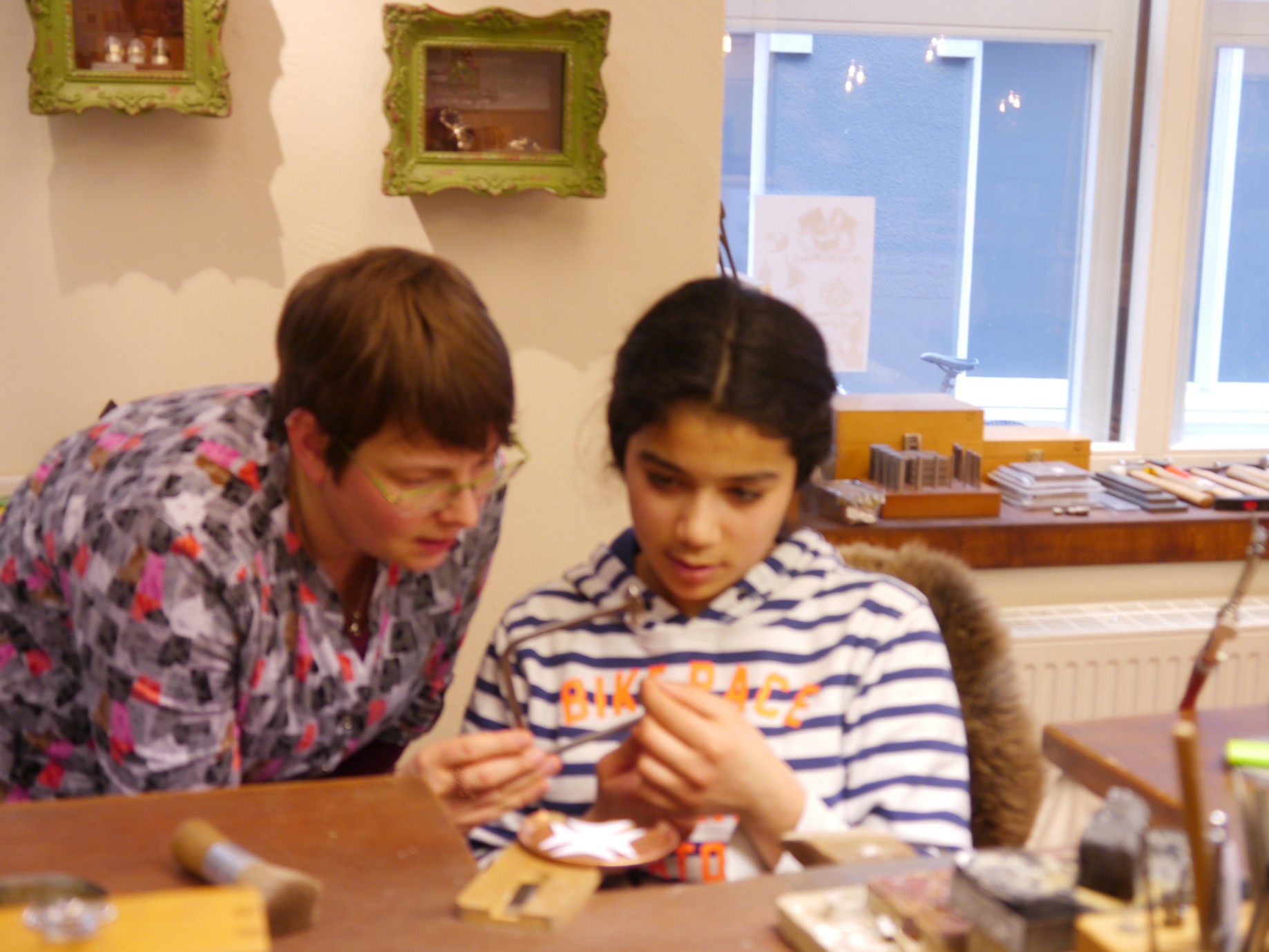 Die Techniken Löten und Polieren erlernen wir in der Goldschmiedewerkstatt von Lea Körffer in Jever. Mit Ausdauer und unter guter Anleitung der beiden Goldschmiedinnen Körffer und Lücke trägt nun jede einen selbst entworfenen und angefertigten Silberring am Finger.