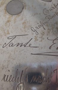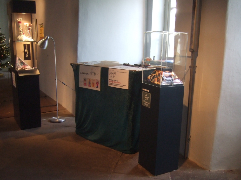 Bei der großen Projektpräsentationsparty haben wir den Part übernommen das Projekt, die drei Gruppen und natürlich die uns wichtigen Informationen zu den Frauen in einer Ausstellung vorzustellen. Auch die unsere selbst gestalteten Objekte die wir mit Blick auf die Sammlungsobjekte hergestellt haben, werden gezeigt. Bei der Projektpräsentationsparty ist die Ausstellung der Treffpunkt, von dem aus wir alle die Führungen durch das Schloss starten.