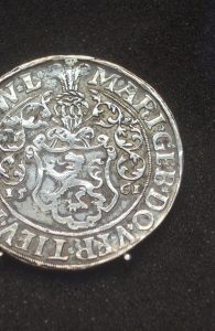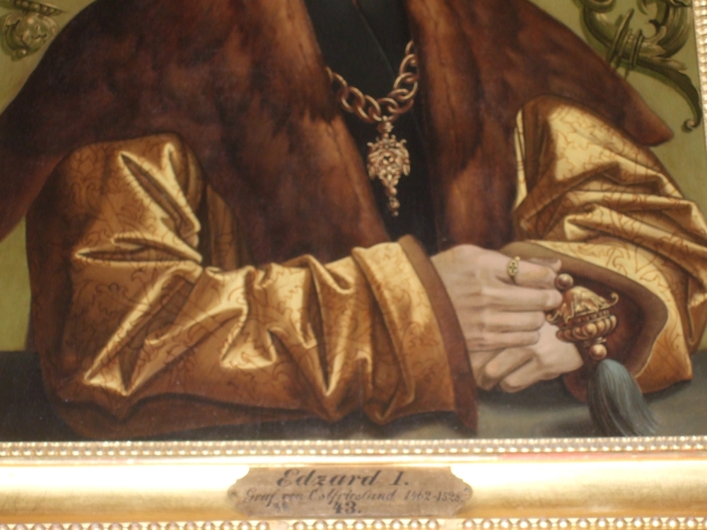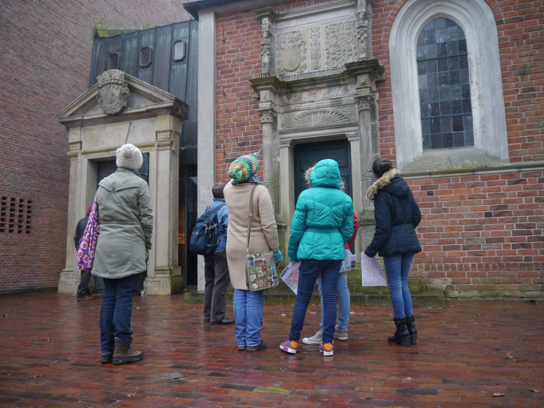 Die Kirche in Hohenkirchen, an der wir jeden Tag vorbeifahren, die Grablege von Edo Wiemken, dem Vater Marias, die nur durch eine Scheibe oder mit Führung anzusehen ist, all das wir von uns genau ‚unter die Lupe genommen‘. So wie wir das auch mit den Metallobjekten in der Museumssammlung machen.