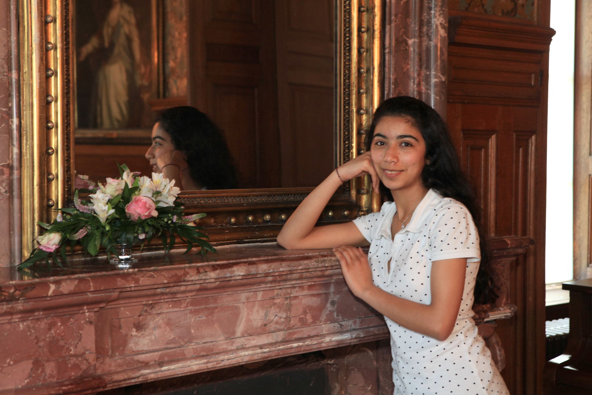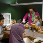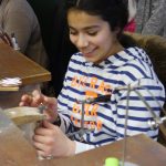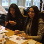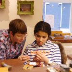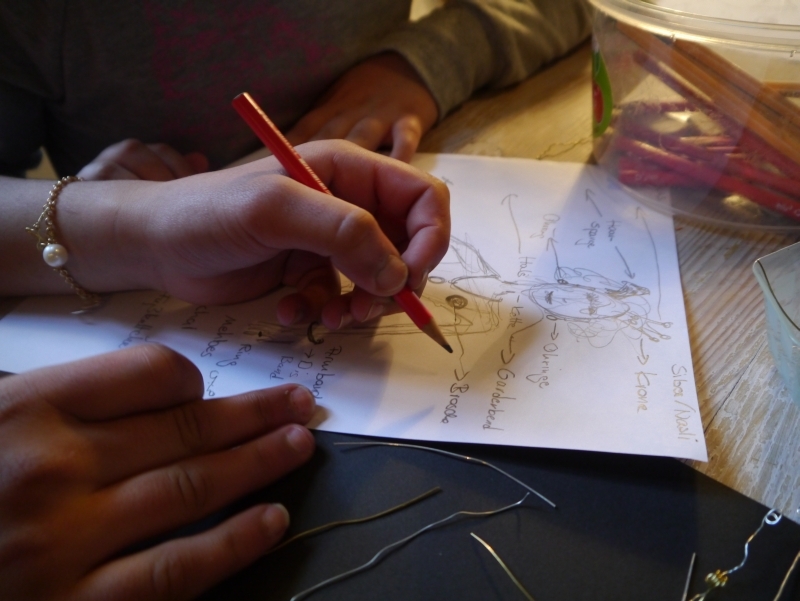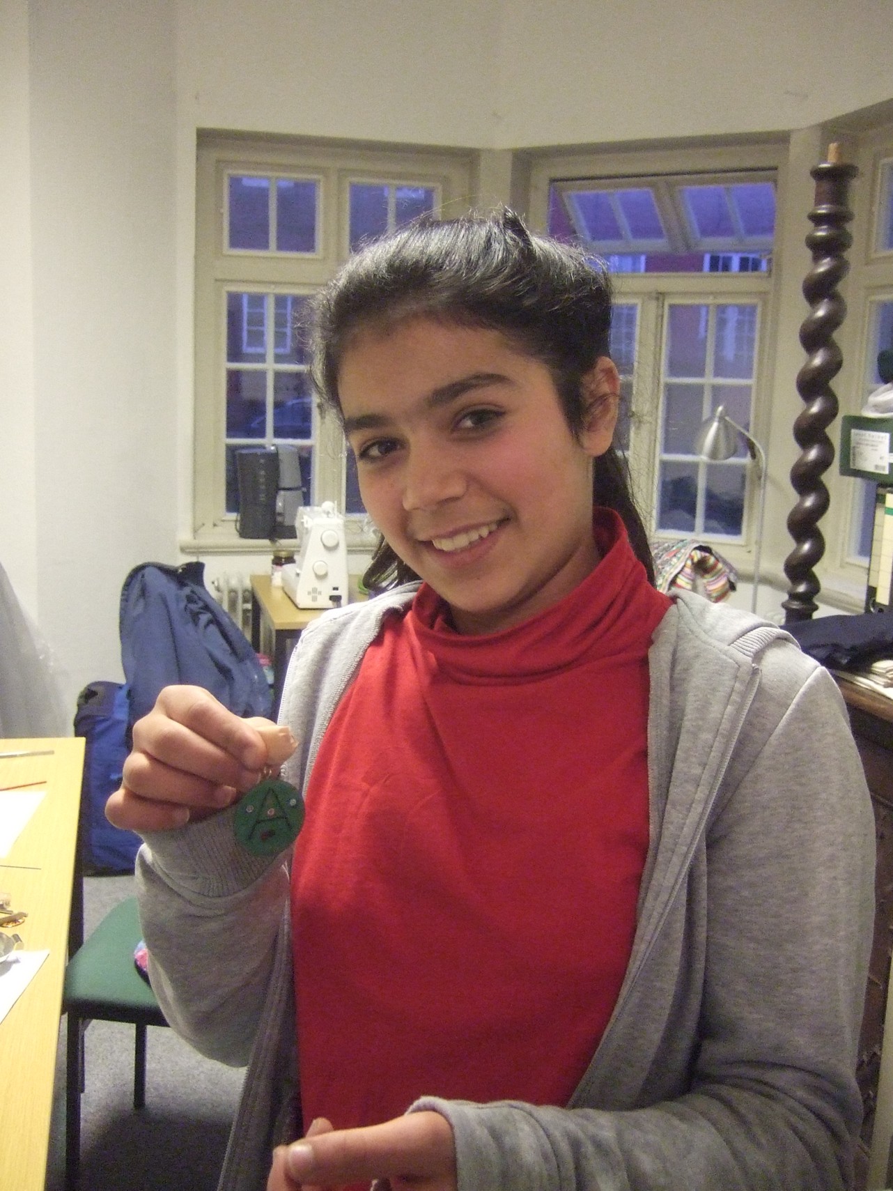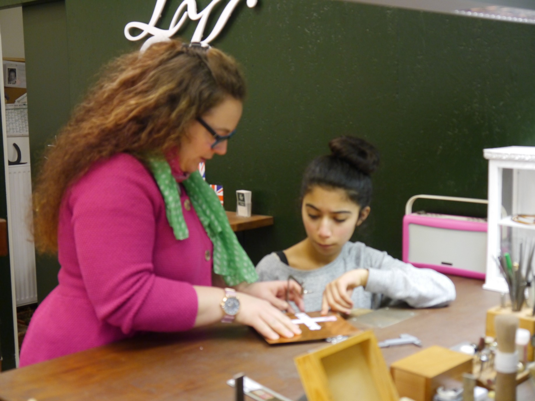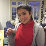 2. Hallo, wir sind Aya und Leyla. Wir kommen aus Syrien und wir wohnen jetzt in Hohenkirchen. Wir kommen jeden Donnnerstag und jeden Freitag ins Schloss. Was machen wir im Schloss? Wir machen Schmuck aus Metall, z.B. Ringe oder Ketten oder Armbänder. Wir waren auch schon einmal bei Lea Körfer in ihrer Goldschmiede. Jetzt gerade arbeiten wir mit Emaille, das ist ein Pulver aus farbigem Glas. Daraus machen wir uns Kettenanhänger. Und wir finden das Schloss GEIL.