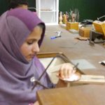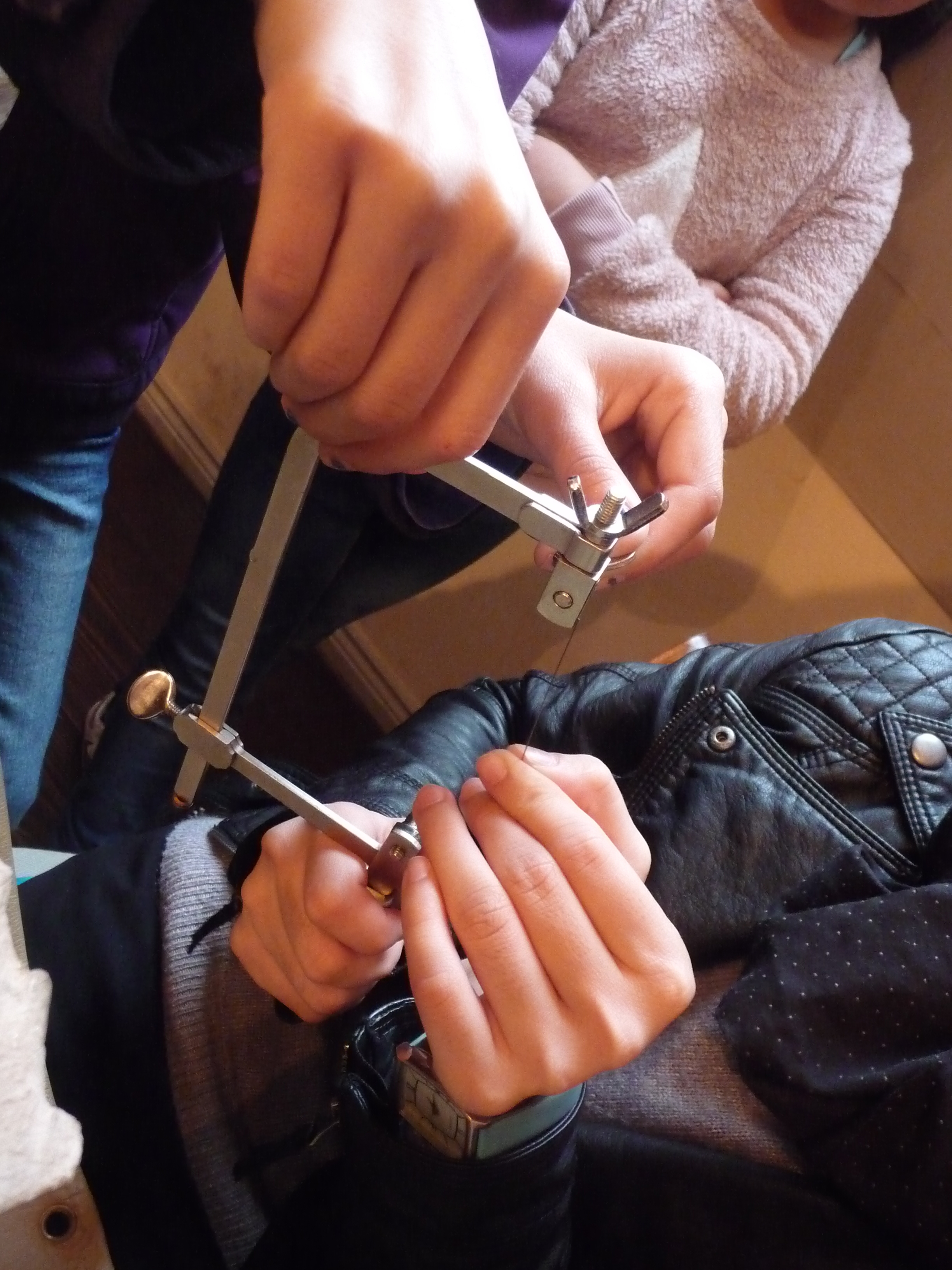 Wozu überhaupt Orden? Wer durfte sie tragen? Und warum gibt es unterschiedliche Orden für Frauen und Männer? Der Sammlungsbestand wird gesichtet und die genaue Betrachtung, wird anhand der Inventarkarten geübt. Wir entwerfen eigene ‚Schlossexpertinnen‘-Verdienstorden aus Filz, aber das ist für uns Metallverarbeitungskennerinnen bei weitem noch nicht alles. Mit der Goldschmiedin Lea Körfer verabreden wir uns in ihrer Werkstatt, um die Entwürfe in Metall umzusetzen – zunächst aber sind auch wir gemeinsam mit den anderen Mädchen zu Gast beim ‚Hut ab‘-Salon des  Frauenortteams.