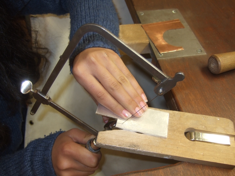 Zangen, Feilen, Säge und Hammer sind die Werkzeuge mit denen wir Metall nach unseren Vorstellungen formen. Dabei unterstützen und begleiten uns die Goldschmiedin und Kulturwissenschaftlerin Dr. Ursula Lücke aus Hamburg, die Goldschmiedin Lea Körffer aus Jever und die Fotografin Sabine Krischke, ebenfalls aus Hamburg.