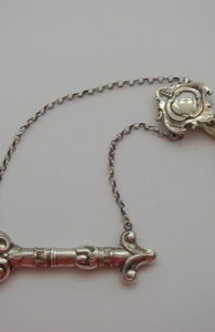 Verschluss, Schutz oder Repräsentation: was ein Mensch trägt und womit er oder sie sich umgibt, ist auch eine Aussage über Persönlichkeit und Stellung. Jede von uns überlegt also, was sie sich aus Metall selbst gestaltet und an ihre Kette hängt – und sich damit in Szene setzt.