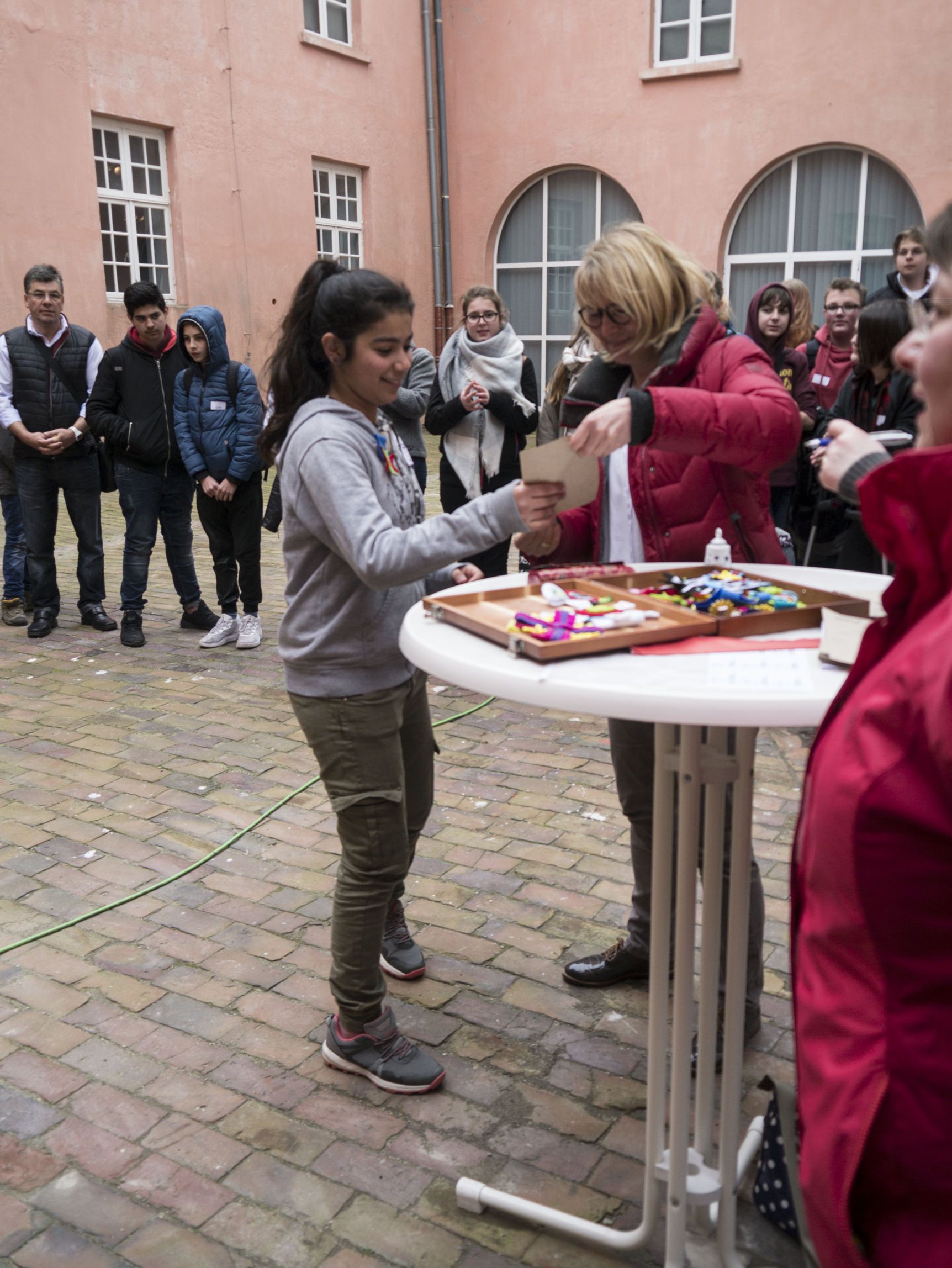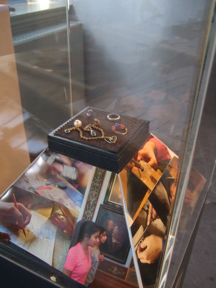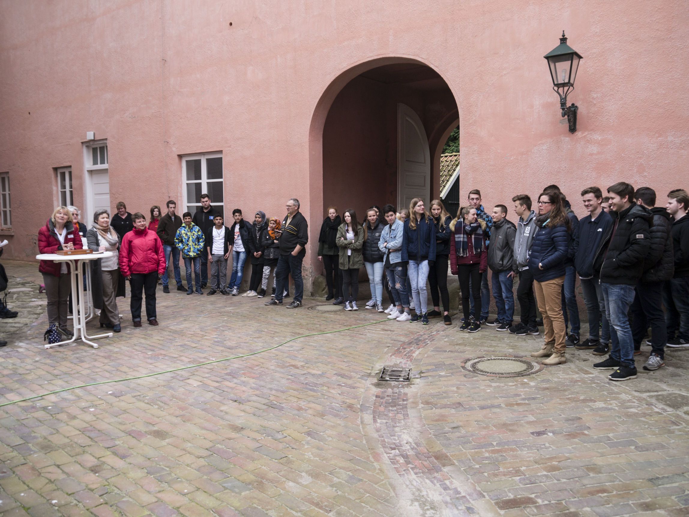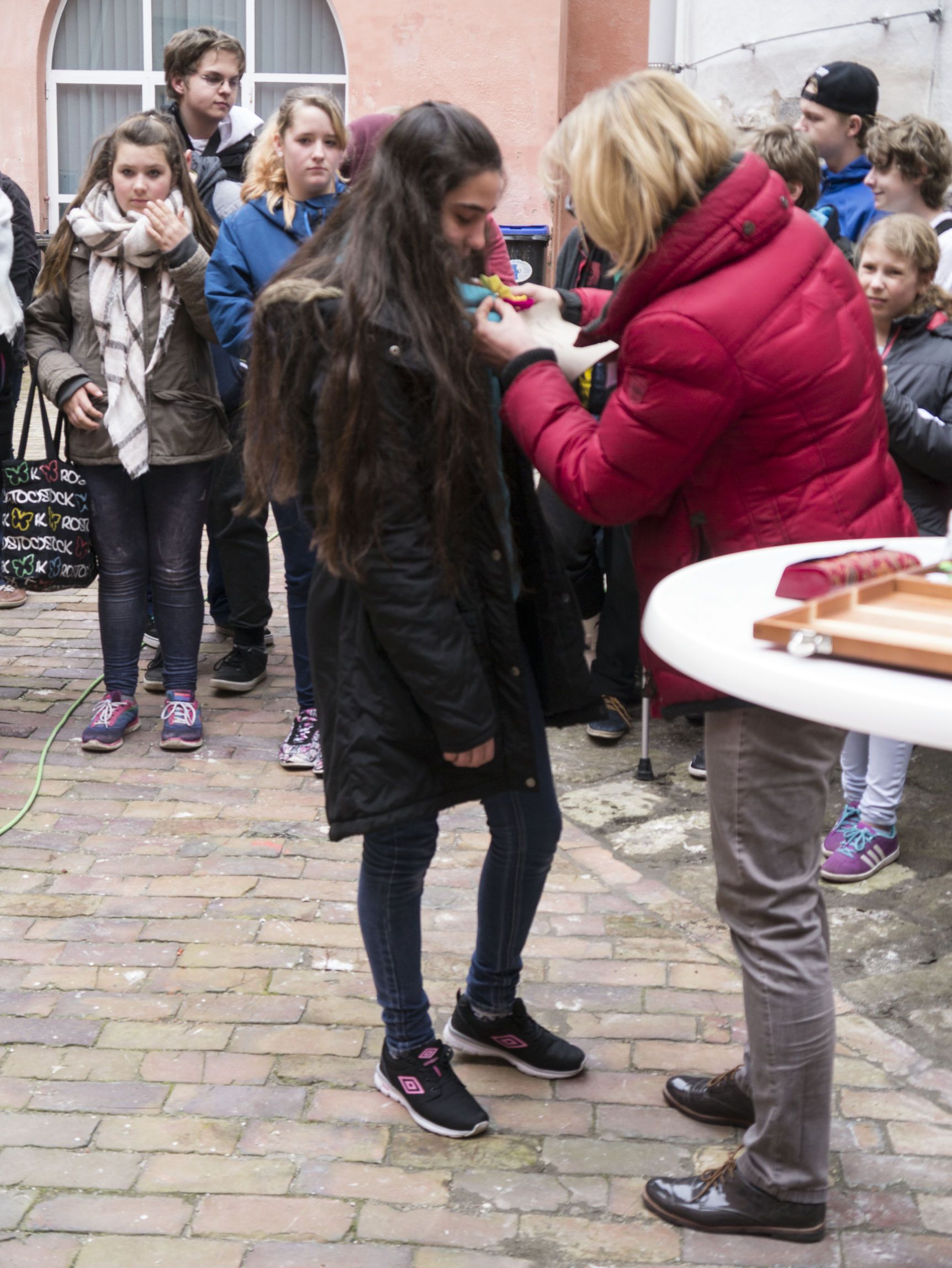 Am Tag der offenen Tür zeigen wir unseren Eltern, Freunden und Lehrerinnen zum ersten Mal das Schloss, das wir nun schon in- und auswendig kennen. Den vielen Interessierten erläutern wir die Herstellung unserer Schmuckstücke anhand der ausgestellten Fotos und der selbst gestalteten Anhänger und Ringe. Ganz selbstverständlich erfahren die Besucherinnen und Besucher etwas zu den Metallgegenständen der Frauen, die im Schloss lebten.