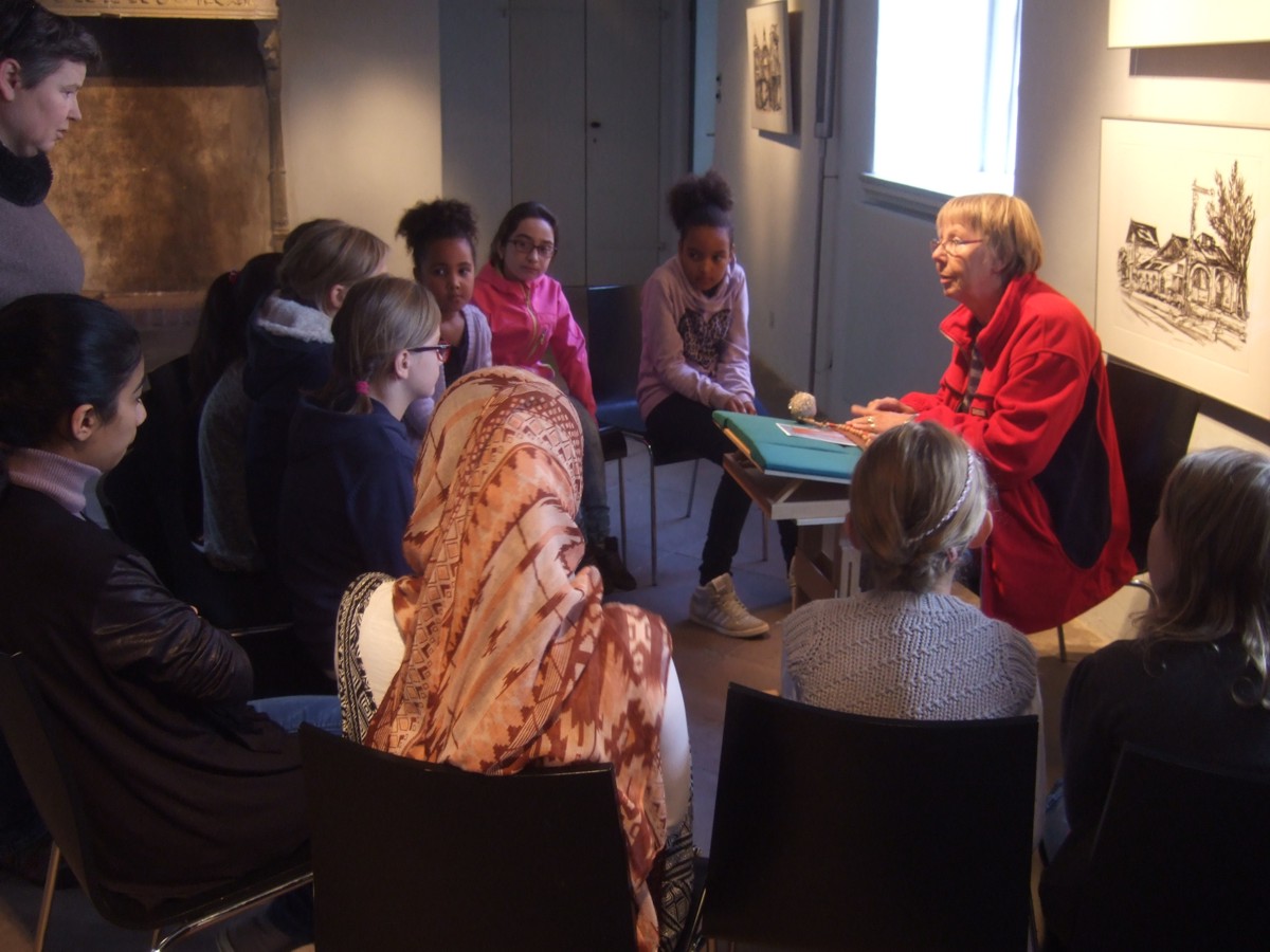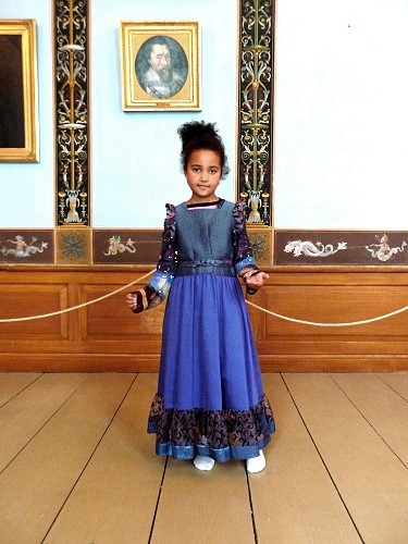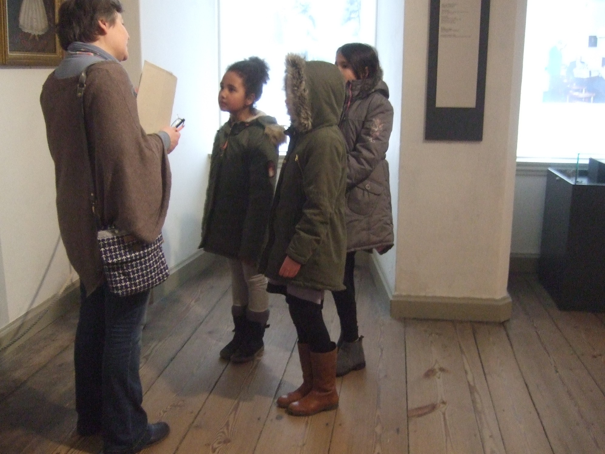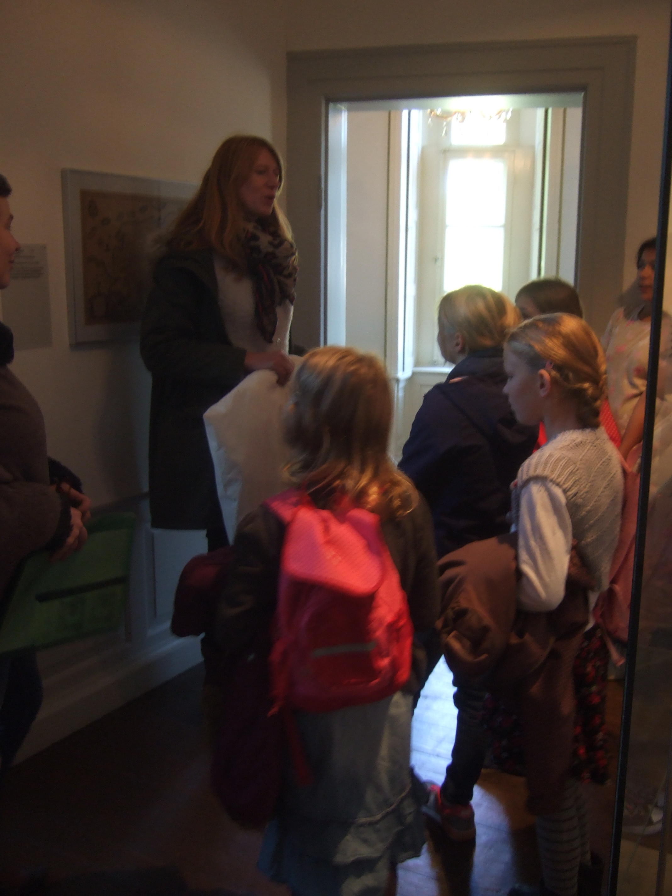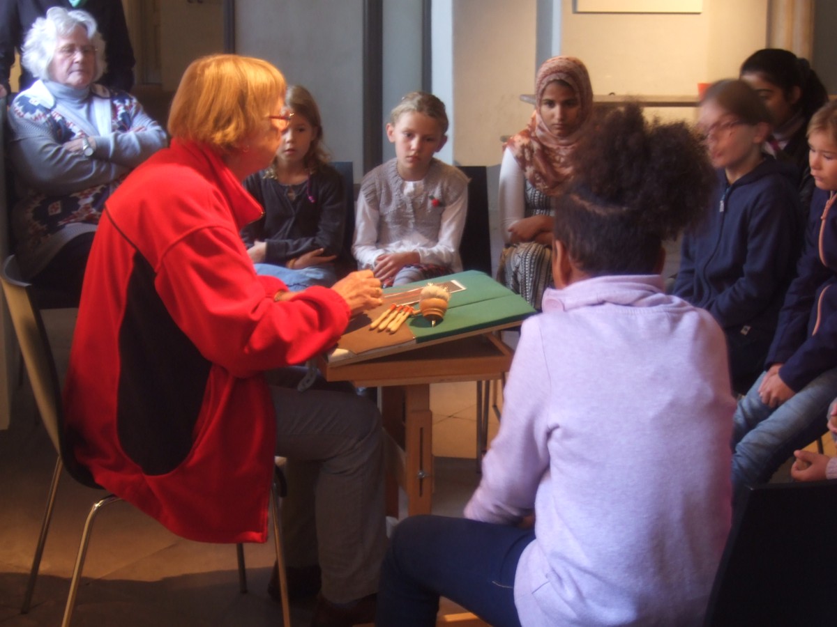 Das Projekt stellt sich vor: In unseren Schulen, bei den Integrationslotsen Jever aber vor allem bei der Aktionswoche im Schloss, die jeden Tag Neues bietet, lernen wir das Schlossmuseum und die Projektmitarbeiterinnen kennen. Das Museum wird von uns erkundet. Dazu wird auch schon mal tief in den Kostümschrank der Schlossnäherinnen gegriffen und die Geschichte von Maria von Jever wird uns von der museumspädagogischen Mitarbeiterin Karin Steiner in passendem Kostüm erzählt.