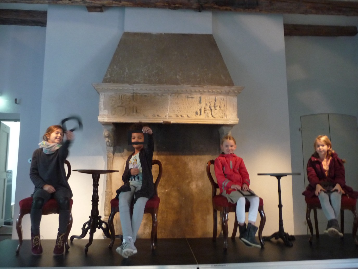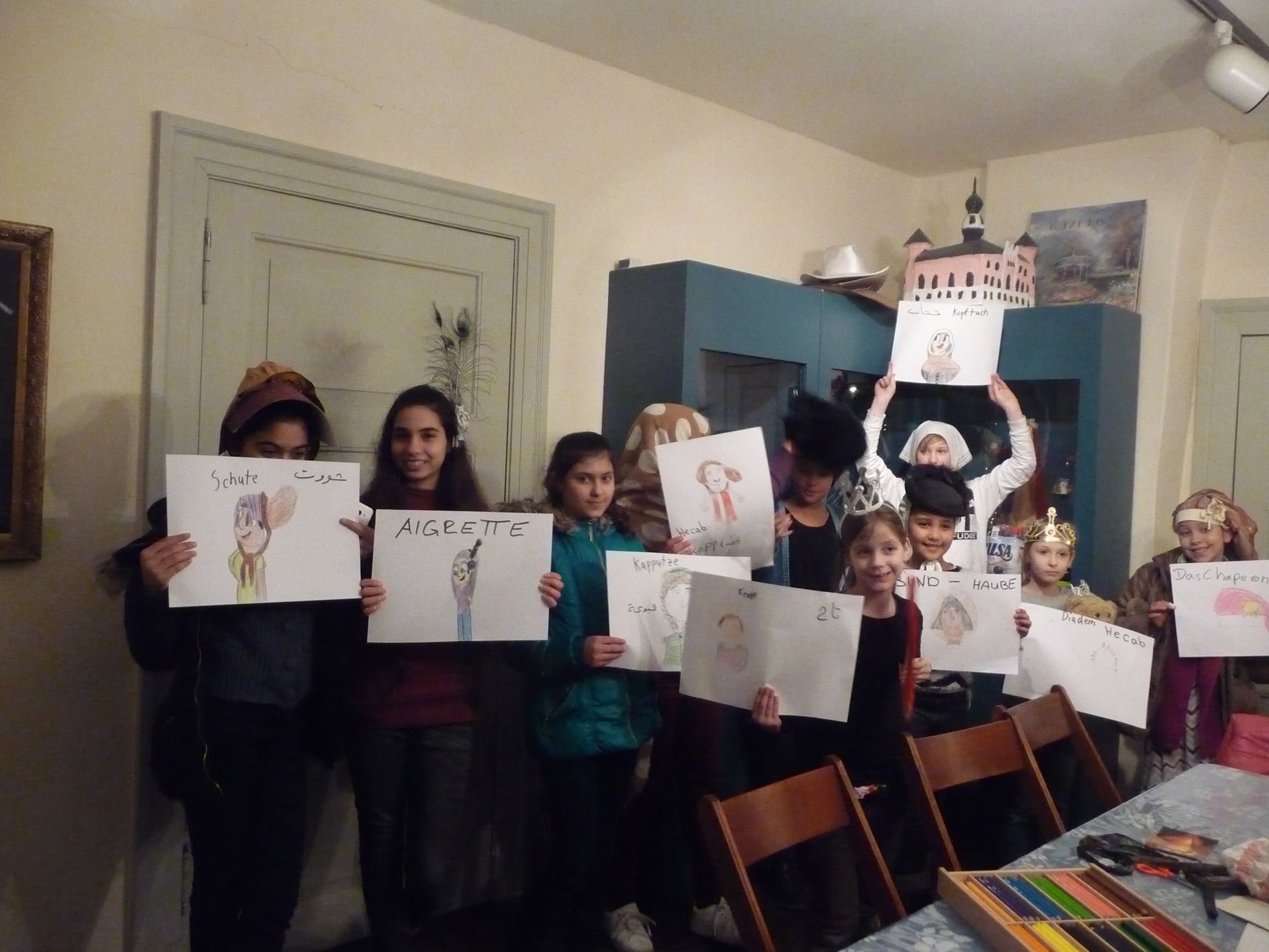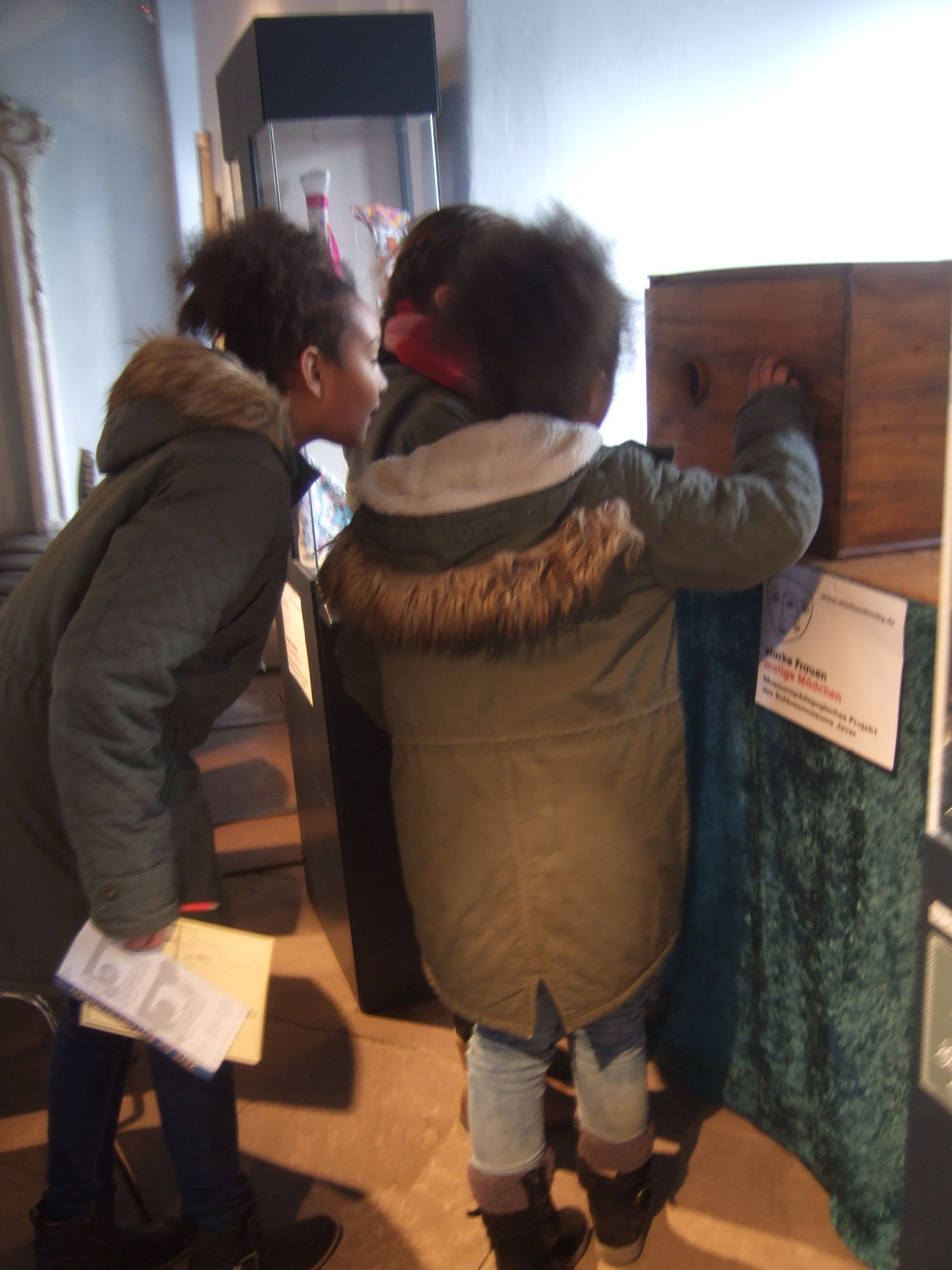 Das Projekt stellt sich vor: In unseren Schulen, bei den Integrationslotsen Jever aber vor allem bei der Aktionswoche im Schloss, die jeden Tag Neues bietet, lernen wir das Schlossmuseum und die Projektmitarbeiterinnen kennen. Das Museum wird von uns erkundet. Dazu wird auch schon mal tief in den Kostümschrank der Schlossnäherinnen gegriffen und die Geschichte von Maria von Jever wird uns von der museumspädagogischen Mitarbeiterin Karin Steiner in passendem Kostüm erzählt.
