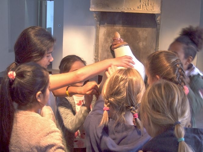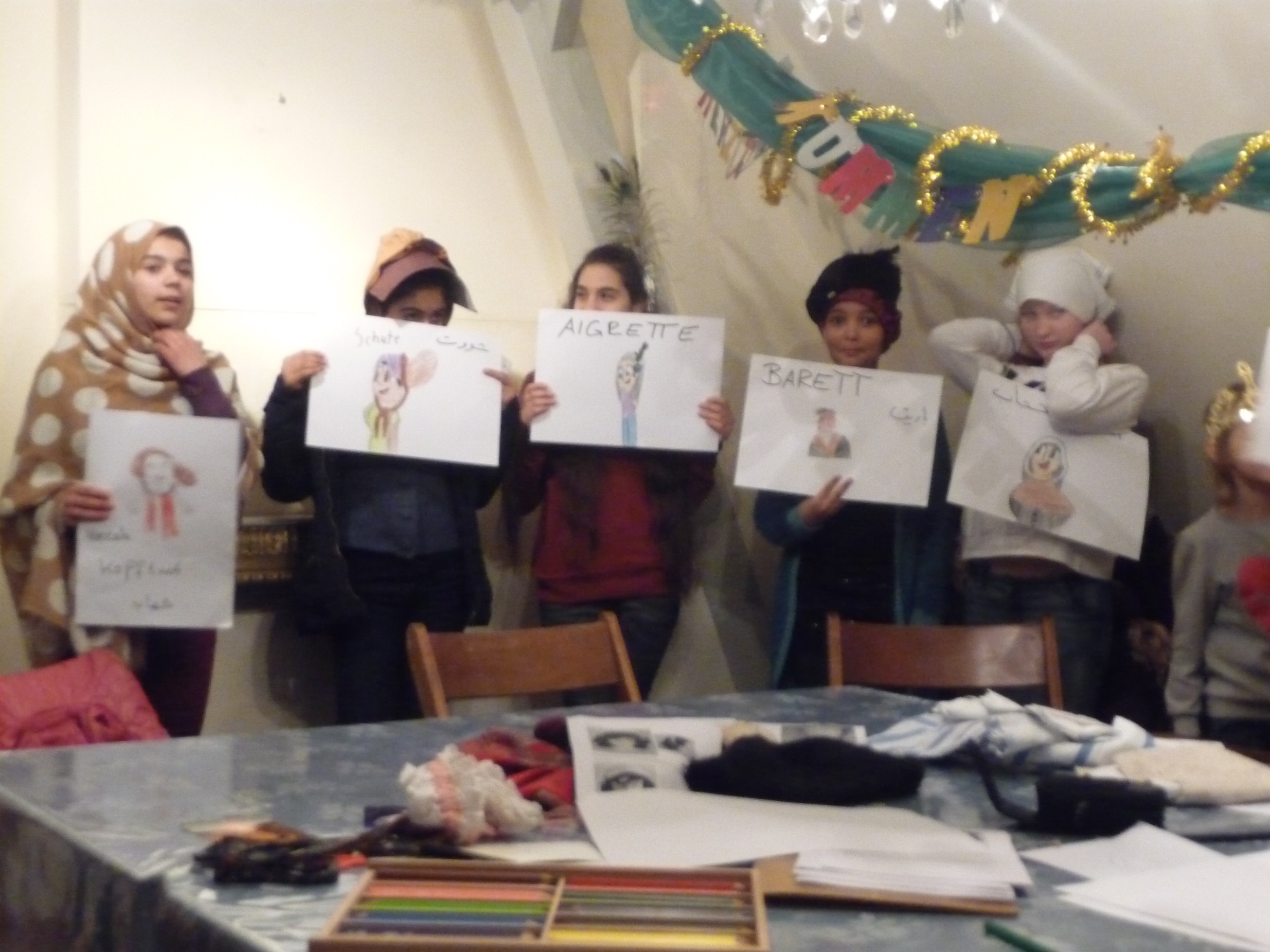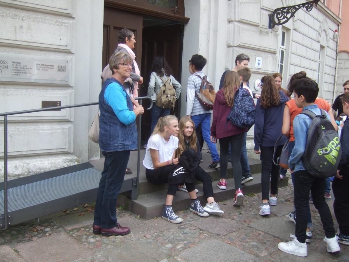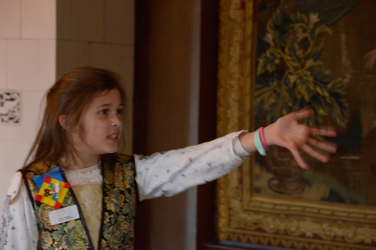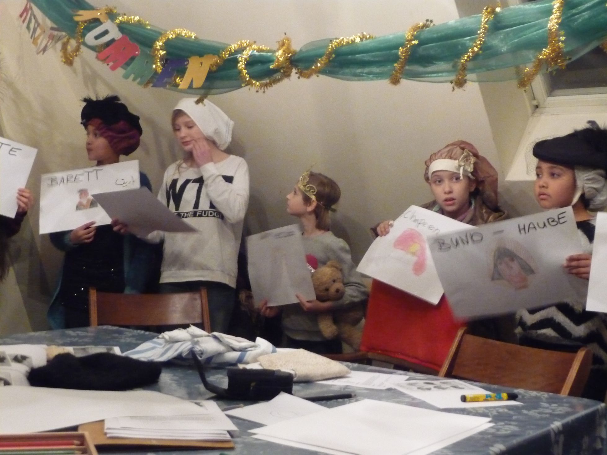 Das Projekt stellt sich vor: In unseren Schulen, bei den Integrationslotsen Jever aber vor allem bei der Aktionswoche im Schloss, die jeden Tag Neues bietet, lernen wir das Schlossmuseum und die Projektmitarbeiterinnen kennen. Das Museum wird von uns erkundet. Dazu wird auch schon mal tief in den Kostümschrank der Schlossnäherinnen gegriffen und die Geschichte von Maria von Jever wird uns von der museumspädagogischen Mitarbeiterin Karin Steiner in passendem Kostüm erzählt.