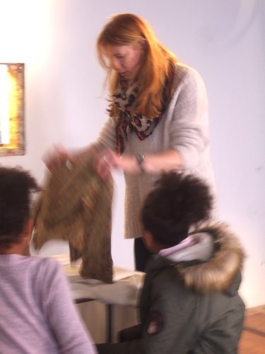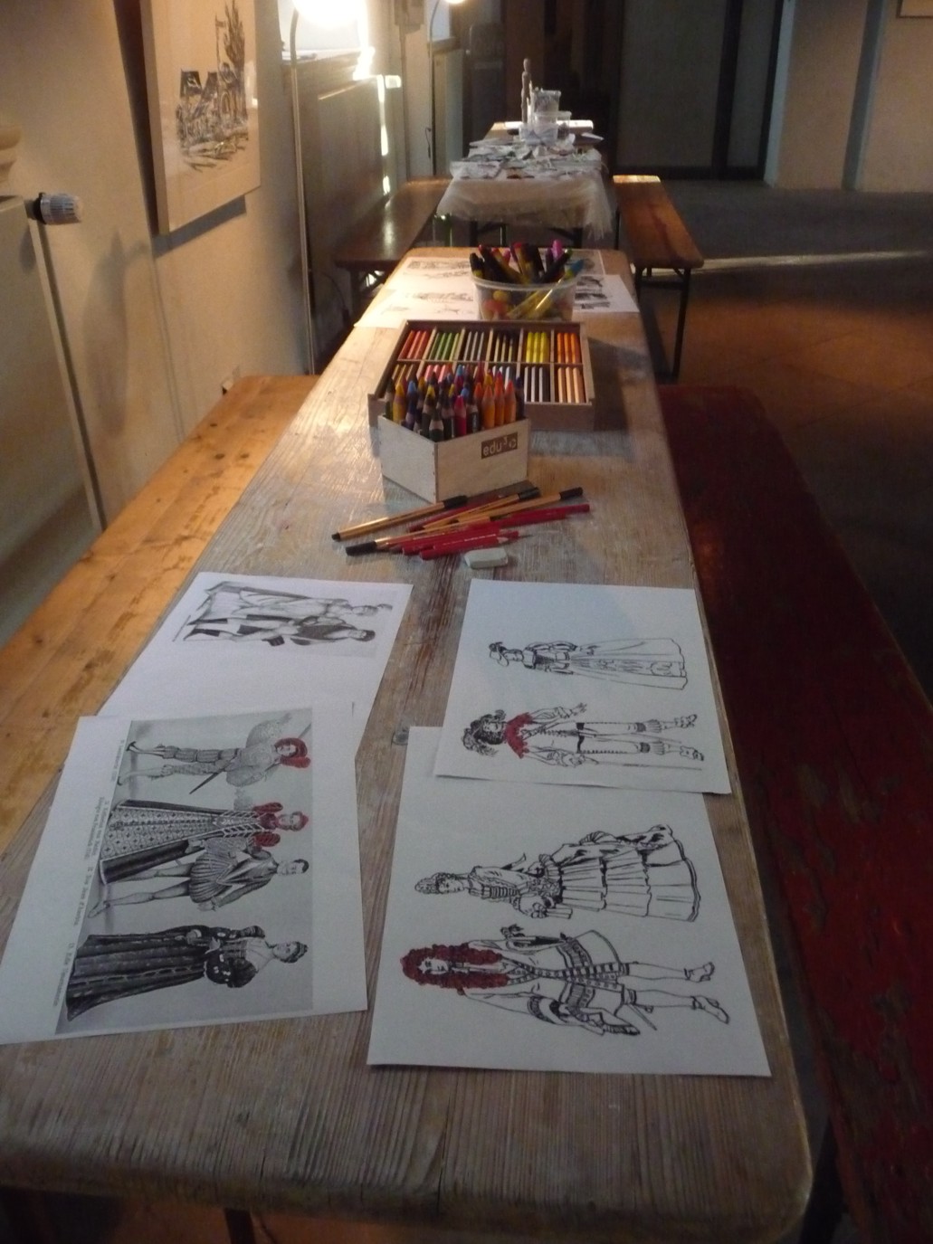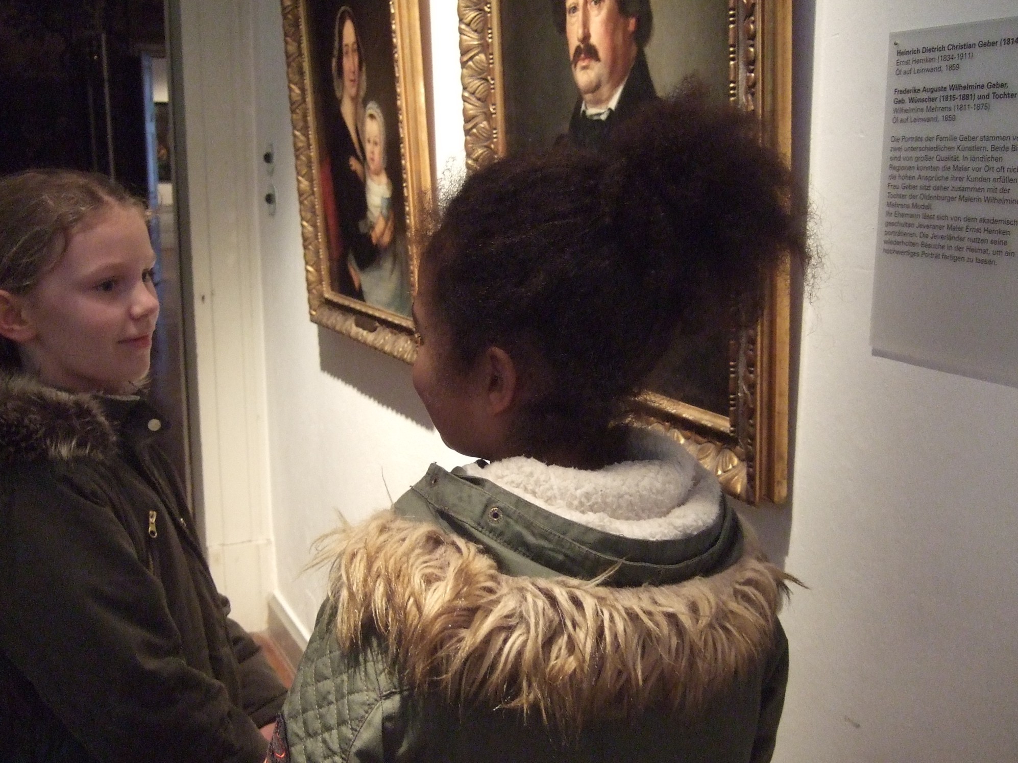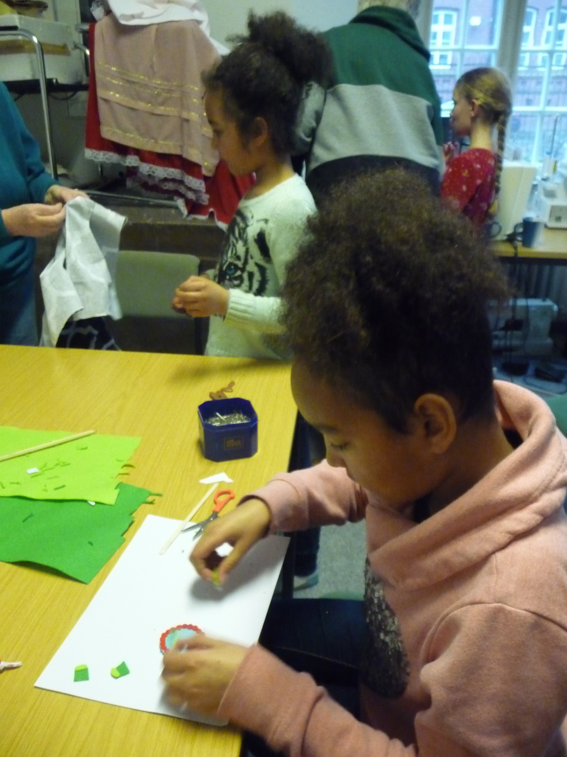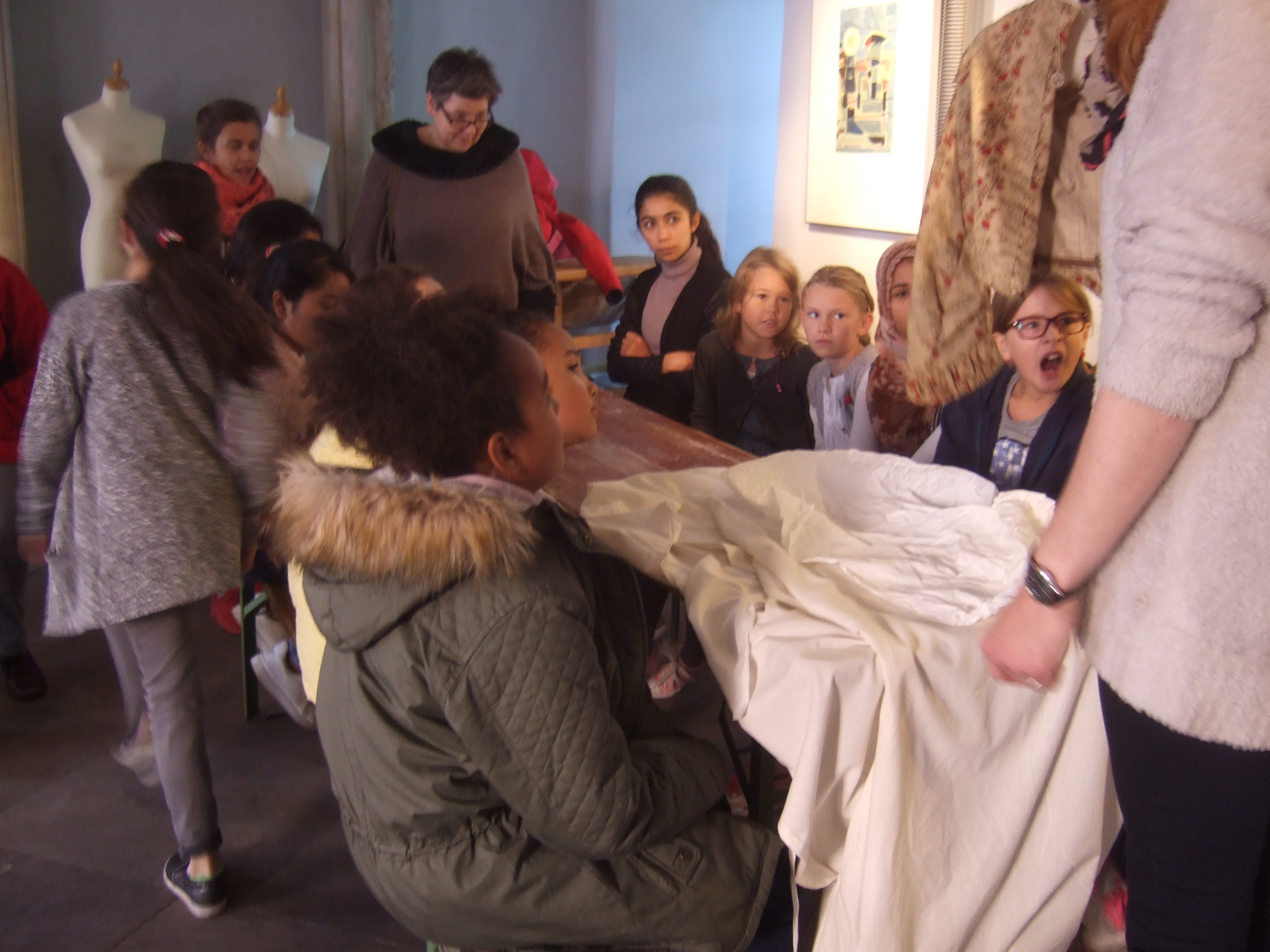 Nach den Weihnachtsferien kehren wir zu unseren Lieblingsstücken in der Schlosssammlung zurück. Kleidung und Stoffe schauen wir uns inzwischen sehr genau an – auch auf den Bildern, die es im Schloss zu entdecken gibt. Schnell gehen wir, mit Unterstützung ‚unserer Schlossnäherinnen‘ an unsere eigenen Kleidungsentwürfe zurück -sie sollen im April zum Abschluss des Projektes öffentlich präsentiert werden!