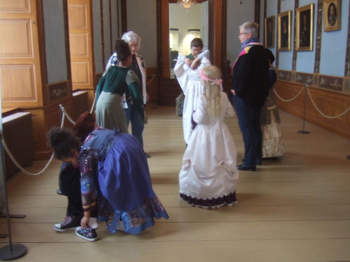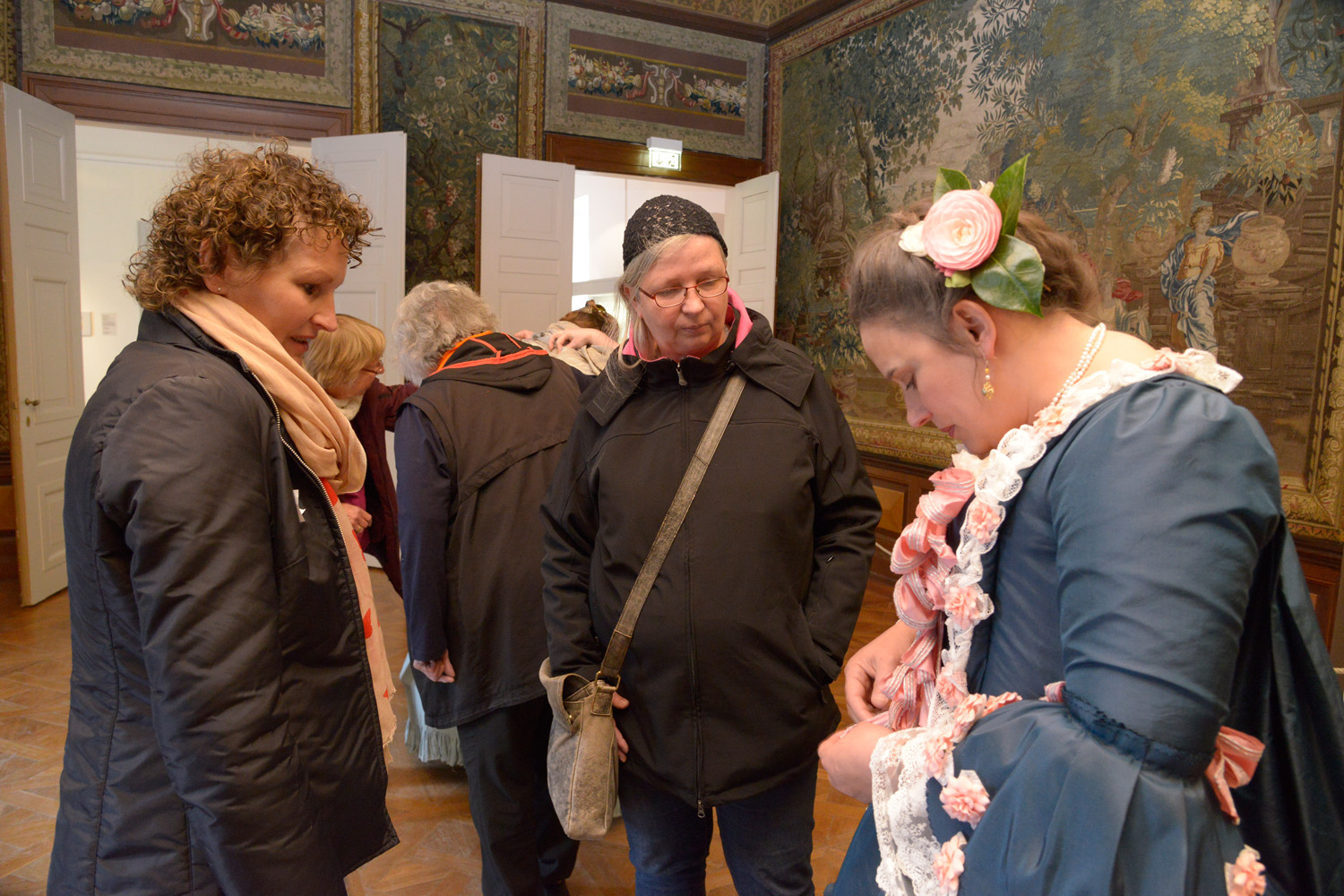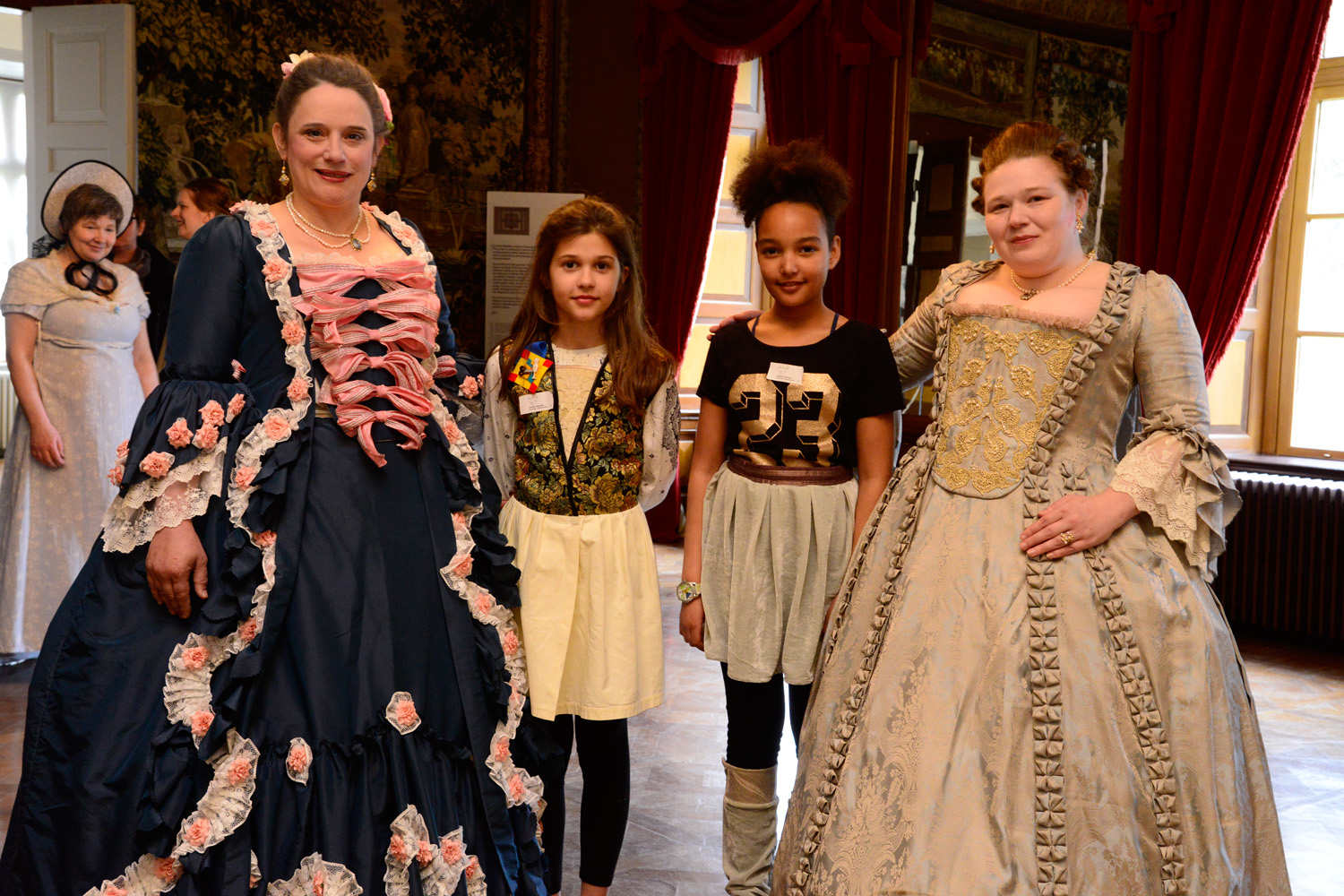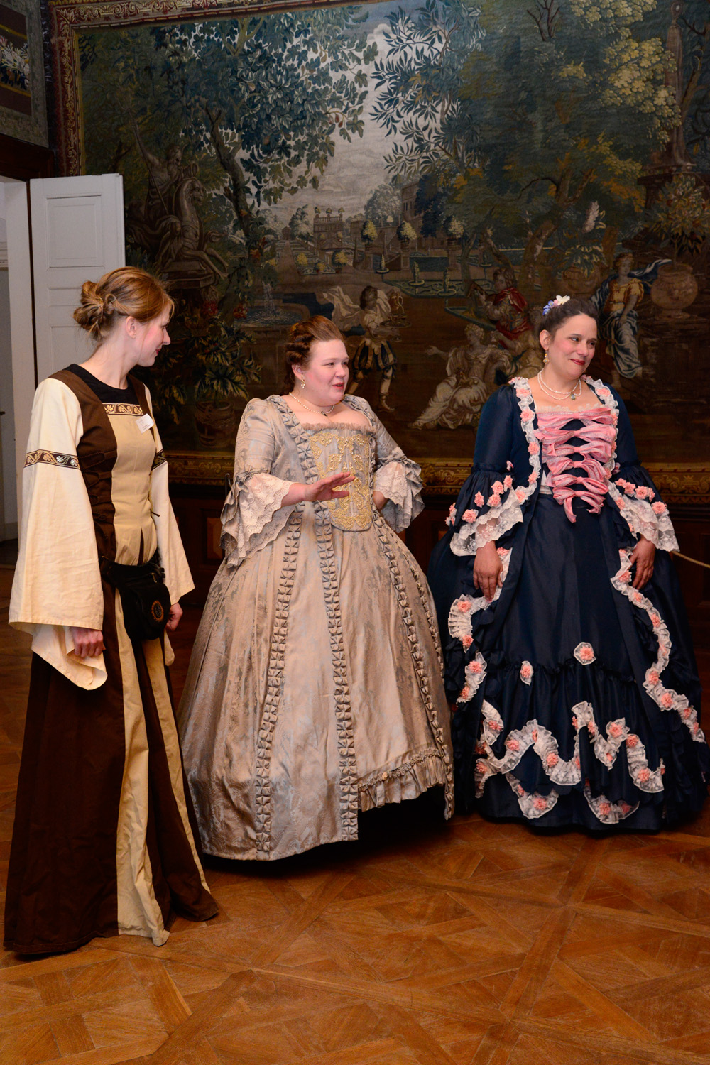 Wir kennen das Schloss inzwischen wie unsere eigene Hosentasche! Mit dem Tag der offenen Tür beginnen wir mit unseren Einladungen an Familie, Freunde und Interessierte zu einem Besuch im Schlossmuseum. Wer will kann sich von uns durch das Schlossmuseum führen lassen, kann sich die ausgestellten ‚Kleiderskizzen‘ erklären lassen und erfährt natürlich auch einiges über die Frauen, die hier im Schloss über die Jahrhunderte lebten.